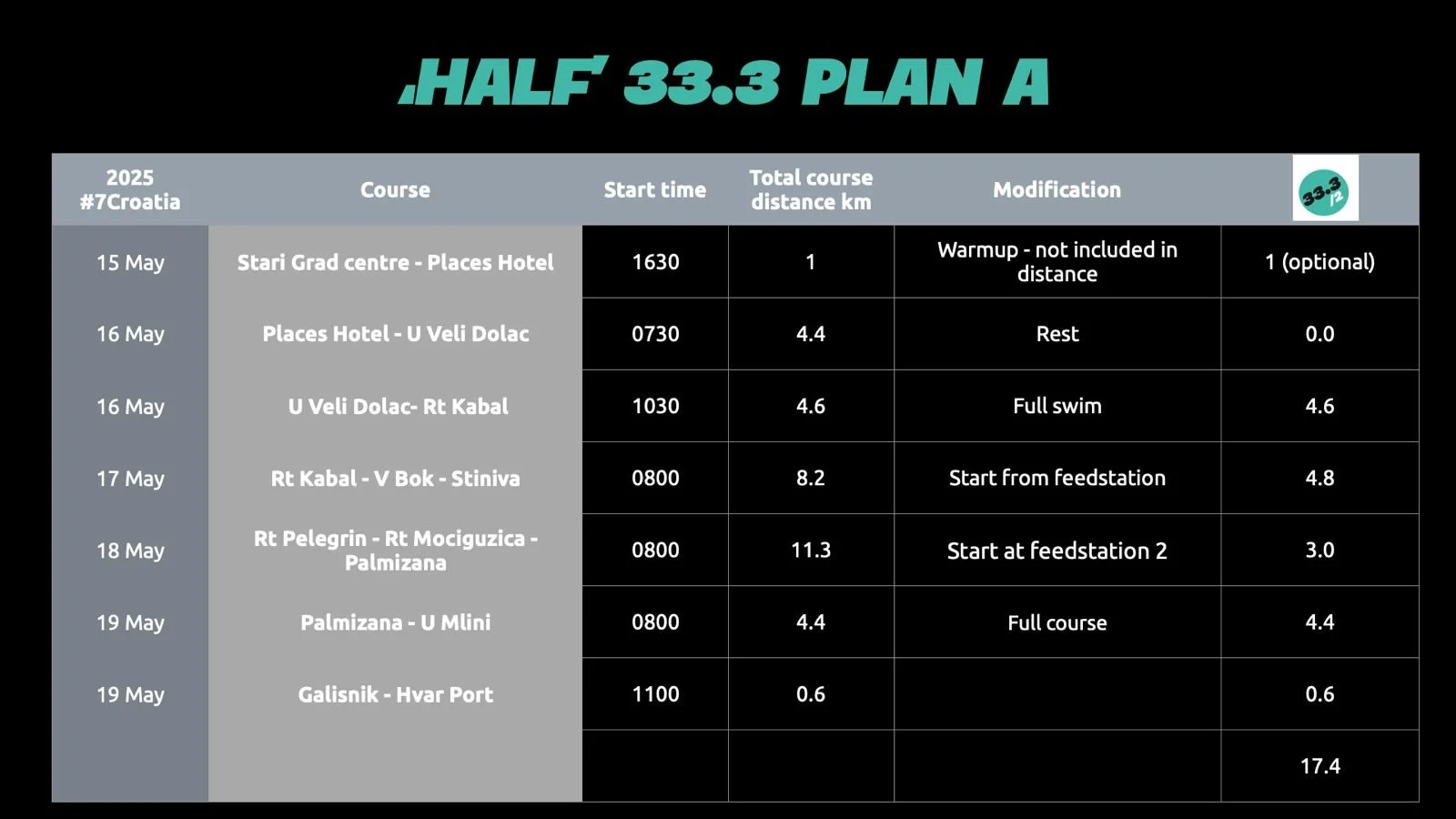 See below an example of the planned swims in #7Croatia in 2025 [NB until #10 this format was known as 11.1 and 22.2 - these have been combined in to one shorter format for 2026]