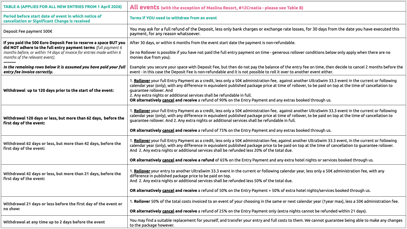 C2.1 If you wish to cancel your entry and your full entry payment has been made, you must email us immediately at epicswims@ultraswim333.com. You may opt for one of the following actions -